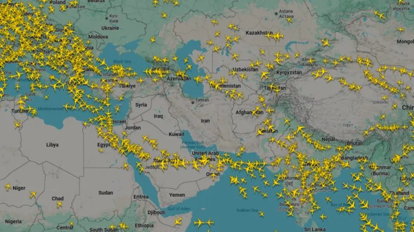 O mapa de voos do Flightradar24 revela uma redução expressiva nas operações das cinco principais companhias aéreas do Oriente Médio: Air Arabia, Emirates Airlines, Etihad Airways, FlyDubai e Qatar Airways. Somadas, essas empresas registraram 742 voos na quarta-feira (11 de março), um número drasticamente inferior aos 2.056 voos contabilizados em 24 de fevereiro, antes do agravamento da crise. Essa diminuição reflete o receio e as restrições impostas pela instabilidade geopolítica na região.