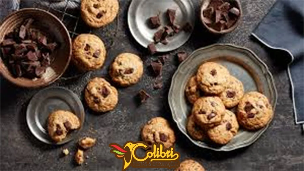 Os cookies tradicionais de baunilha com gotas de chocolate são um sucesso garantido. A combinação da massa amanteigada com o chocolate ao leite ou amargo evoca memórias afetivas e agrada a todos os paladares. Oferecer diferentes tamanhos pode incentivar a compra de combos, aumentando o ticket médio e o faturamento.