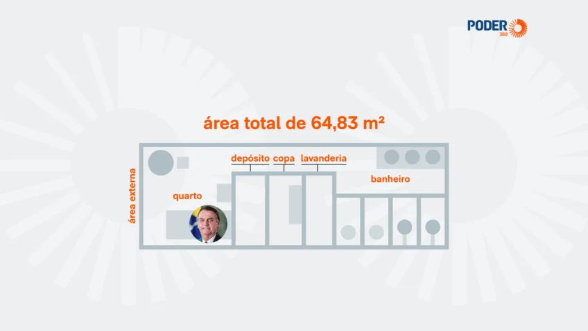 A nova cela destinada a Bolsonaro possui 64,83 m², mais de cinco vezes o tamanho da anterior, que tinha 12 m². O espaço é significativamente maior e mais equipado, contando com banheiro com chuveiro de água quente, cozinha para preparo e armazenamento de alimentos, lavanderia, um quarto com cama de casal, sala e uma área externa privativa. A unidade ainda dispõe de geladeira, armários e televisão.